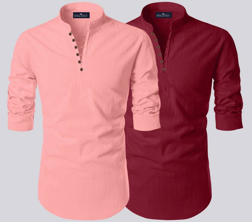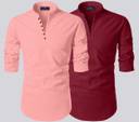 ROYAL SCOUT Pack of 2 Men Solid Cotton Blend Straight Kurta (Pink, Maroon)
