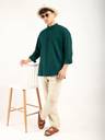 zbio Men Solid Cotton Blend Straight Kurta (Green)
