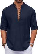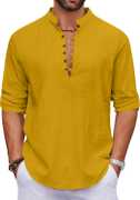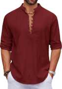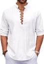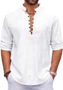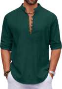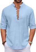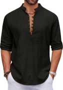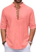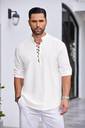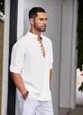 Men’s Split Neck Casual Shirt with Wooden Buttons & Rolled-Up Sleeves