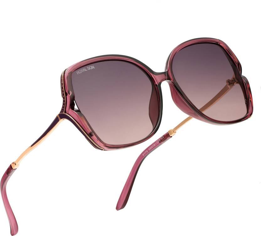 Color & Style Purpal Frame. Feather- Suare With UV Protected Lenses Sunglasses, Help you see a better view. PROTECTION FOR YOUR EYES ROYAL SON Stylish OverSized sunglasses with scratch resistant and UV400 Protection coating lenses can filter out sunlight reflected glare, and UV Protected lens For Eliminating Glare While Maintaining Color Integrity protect your eyes from long term damage by blocking 100% of harmful UVA and UVB rays. HIGH QUALITY MATERIALS THIS ROYAL SON Oversized Stylish SUNGLASSES is made of Plastic Fame and UV Protected 400 lenses, Metal hinges, all the details ensure you a long time using. Durability to prevent breakage even in the toughest conditions and proven to protect your eyes. This sunglasses is suitable for Female and suitable for any climate and weather conditions. Great for driving, shopping adventures, time at the beach. PRODUCT DIMENSION –Size (Large)- Lens Width: 62mm(2.44inches) | Lens Hight: 58mm(2.28inches) | Nose Bridge: 14mm(0.55inches) | Temple Length: 148mm(5.82inches) GIFT IDEAS PACKAGE Sunglasses*1 | High Quality Cleaning cloth*1 |Glasses Case*1. it is also a gift packaged ready, making it a wonderful yet practical gift idea for friends and family.