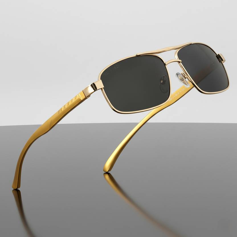 Latest HD Polarized Classic Retro Rectangle aviator Shape Shades/Sunglasses for Mens women Unisex Style (Aluminium leg with Spring Hinge)