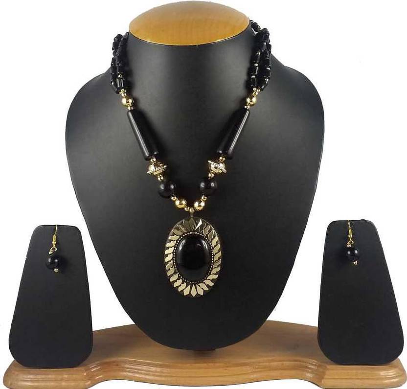 Royal Villa Crafts Hand made Jewel Set and adds a hint of raw ethnic beauty to any look. Pair this Chunky, bohemian, statement necklace with Sarees, Kurtis or other ethnic, Indo-western as well as casual wear..Necklace handcrafted with chunky designer beads..Round metallic pendant showcases attractive red, green, golden inlay work..Also an ideal gifting option for girls & women on any occasion. Representing a classic fusion of exquisite craftsmanship and feminine elegance, this set will definitely be a treasured inclusion in every woman's fashion jewellery collection. The glass & lac beads make this piece vibrant and suitable to ethnic wear