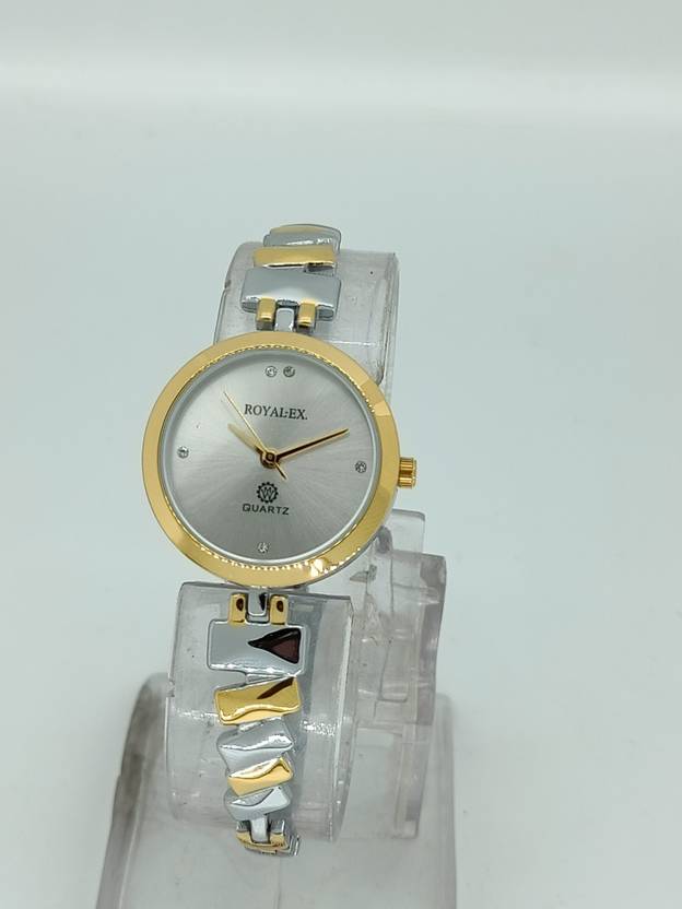 Royalex Ladies Watch Silver Dial Silver Gold Case and Silver Gold Mix Bracelet/Quartz Analog Display Watch/Scratch and Water Resistant/Great Gift Idea Analog Watch - For Women Ladies Watch Silver Dial Silver Gold Case and Silver Gold Mix Bracelet