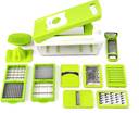 Royalkitchenware 14 in 1 Multipurpose Chopper For Kitchen, Home & Restaurant Vegetable & Fruit Chopper (4 zigzag and 6 cutting blades, 3 in 1 Peeler, 1 Unbreakable Container Lid)