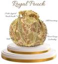 Daily Deals Upgrade your wedding/ festival accessories more with this Gorgeous potli. This beautiful Velvet Potli or batwa bag having eye catchy premium embroidery row silk material. It has a braid string on the top for ease to carry. You can easily carry big mobile phone, valuables items, cosmetics, etc. as this potli having spacious compartment. This Potli bag having beautiful handle, made with high quality pearls which look awesome and easy to carry. Perfect Giveaways! Ideal for Wedding Gifts, Festive Gift,The bag is typically crafted from luxurious fabrics like silk, velvet, or brocade, often embroidered with elaborate patterns and embellishments that reflect cultural heritage. The fabric may be richly adorned with sequins, beads, zari work, or delicate thread embroidery, which can range from traditional motifs to modern, abstract designs.