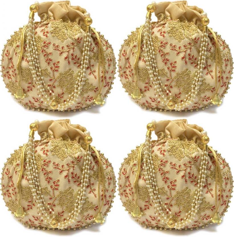 4 Pcs Beige Potli bags for women Potli Hand bags