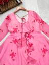 step into elegance with this stunning pink color anarkali gown, designed to bring grace and charm to your ethnic wardrobe. made from soft and flowy georgette fabric, this gown feels lightweight and comfortable for all-day wear. the beautiful printed floral pattern enhances its feminine appeal, while the wide flare creates graceful movement with every step. styled in an elegant anckle length, it offers a flattering silhouette suitable for festive occasions, parties, and special gatherings. the classic round neck style and stylish full sleeves add a refined and modest touch. a smooth creeep inner ensures proper fall and comfort. the matching dupatta completes the coordinated ethnic look beautifully. available in m, l, xl, and xxl sizes. no bottam wear included.