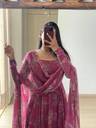 add timeless elegance to your ethnic collection with this beautiful pink color anarkali gown. crafted from soft and flowy georgette fabric, this gown offers a lightweight feel and graceful drape. the all-over printed floral pattern gives it a romantic and refreshing look, while the rich flare enhances movement and style. designed in a flattering anckle length, this gown is perfect for festive occasions, parties, weddings, and celebrations. it features a classic round neck style paired with elegant full sleeves, adding sophistication and comfort. a smooth creeep inner ensures proper structure and ease of wear throughout the day. the matching dupatta, styled gracefully over the shoulders, completes the ethnic look. available in s, m, l, xl, and xxl sizes to suit different body types. no bottam wear included.