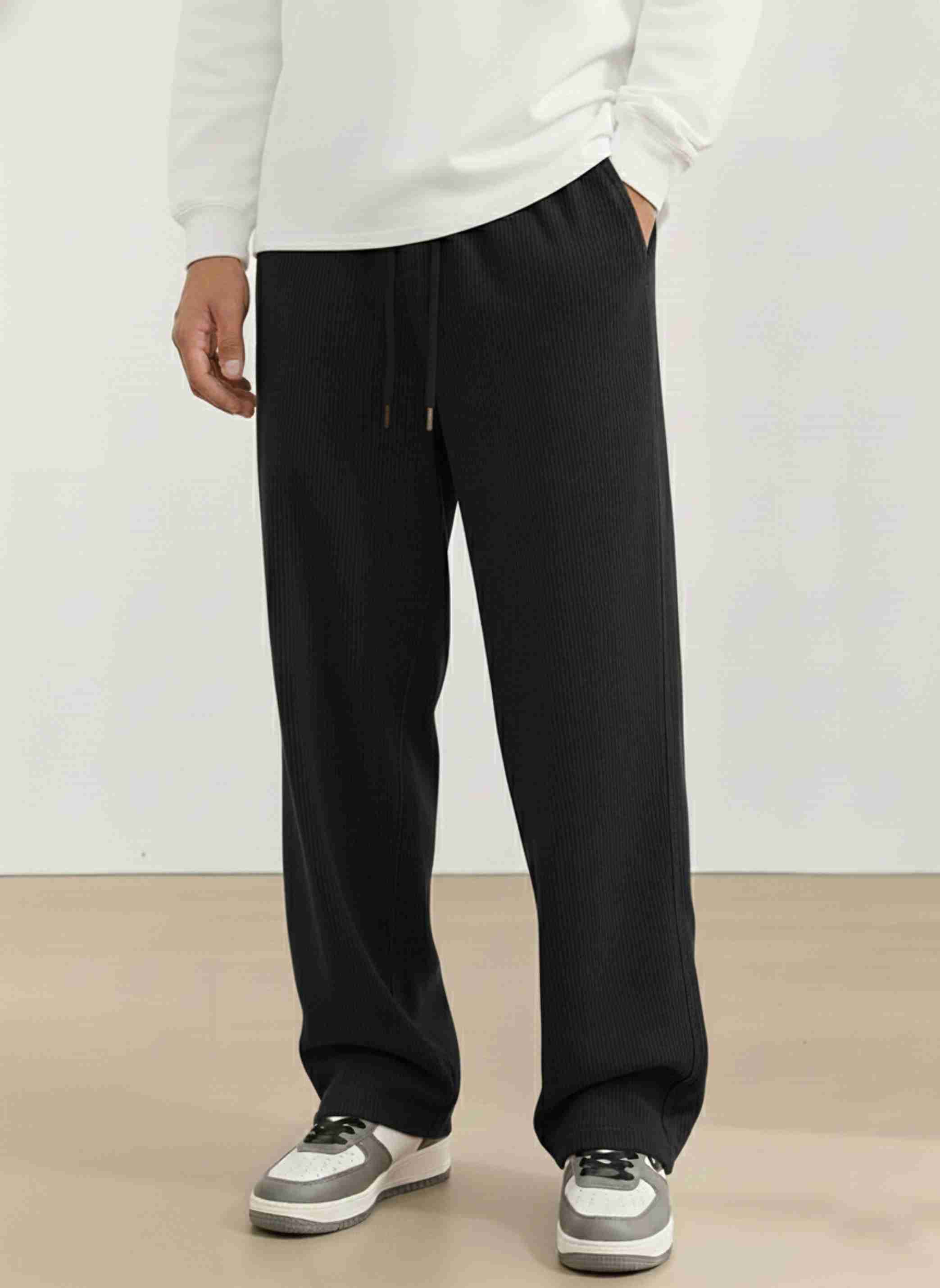 Men Solid Black Track Pants