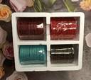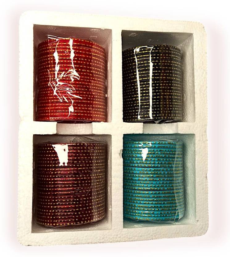 This bangle set includes four vibrant colors, each featuring intricate zari work, perfect for festive occasions or daily wear. Made with high-quality materials for durability and comfort, the set comes in a sturdy thermocol packaging box to ensure safe storage and transit. Ideal for gifting or adding to your collection, this set blends traditional craftsmanship with modern elegance.