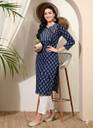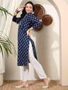 RR SA KURTIS Women Printed Straight Kurta (Blue)