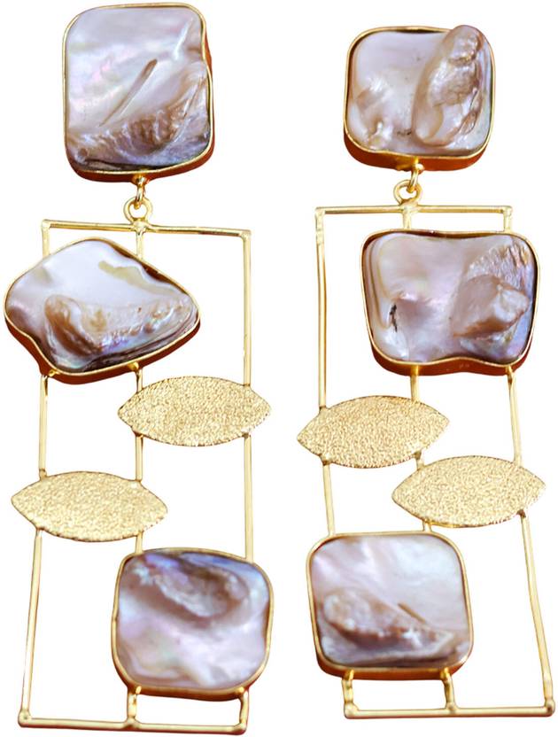 Golden pearl Matte Finish Unique Design Dangler golg Earrings