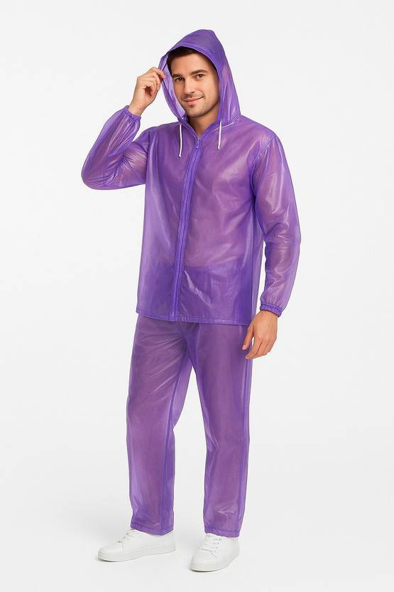 Stay dry and stylish during the rainy season with this premium women's pink transparent raincoat set. This 2-piece rainwear includes a waterproof full-sleeve hooded jacket and matching pants, designed from lightweight and breathable PVC material. The loose-fit design offers comfort, while the trendy transparent finish adds a touch of fashion to your monsoon outfit. Ideal for bike rides, travel, college, and daily commute.