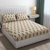RRC Cotton Double Fitted (Elastic) 144 TC Jaipuri Prints Bedsheet