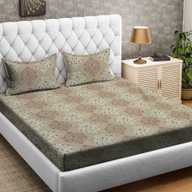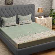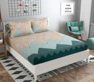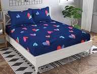 RRC Microfiber Double Flat 144 TC Printed Bedsheet (Pack of 1, Dark Green,Pink,Blue)