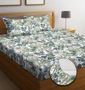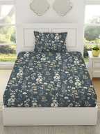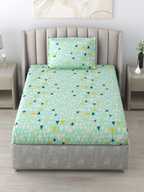RRC Microfiber Single Flat 144 TC Printed Bedsheet (Pack of 1, Dark Green,White)