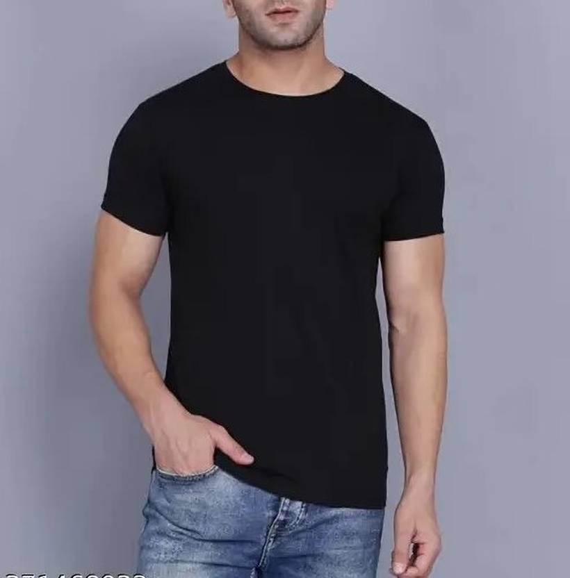 RRKINGĀ Men Solid Round Neck Cotton Blend Black T-Shirt