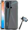RRTBZ Transparent Bumper Corner Soft Silicone TPU Flexible Back Cover for Vivo Y30 / Vivo Y50 with Selfie Stick Monopod with Aux