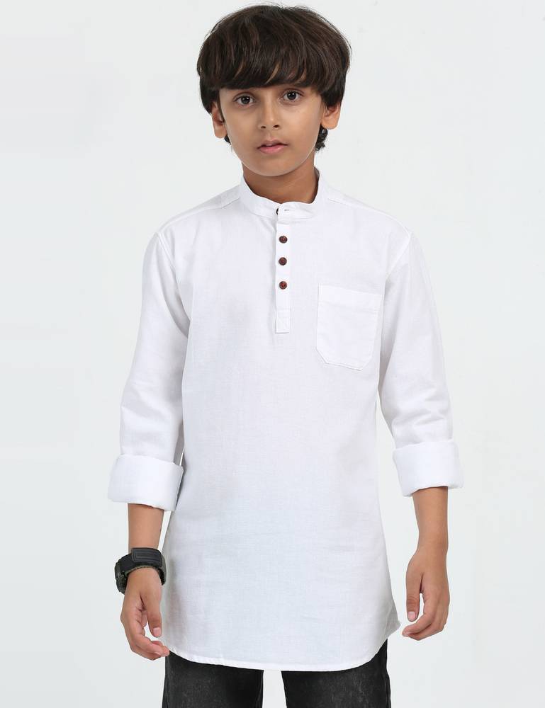 This Boys Solid Pure Cotton Straight Short Kurta combines traditional style with modern comfort, perfect for casual outings and festive occasions. Made from 100% pure cotton, this kurta offers a soft, breathable feel for all-day comfort. The straight cut and solid color add a classic touch, making it a versatile piece that pairs well with jeans or traditional bottoms. Ideal for school, family gatherings, or celebrations, this short kurta is a wardrobe essential for boys.