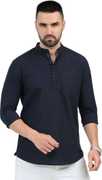 Men Solid Pure Cotton Straight Kurta (Dark Green)