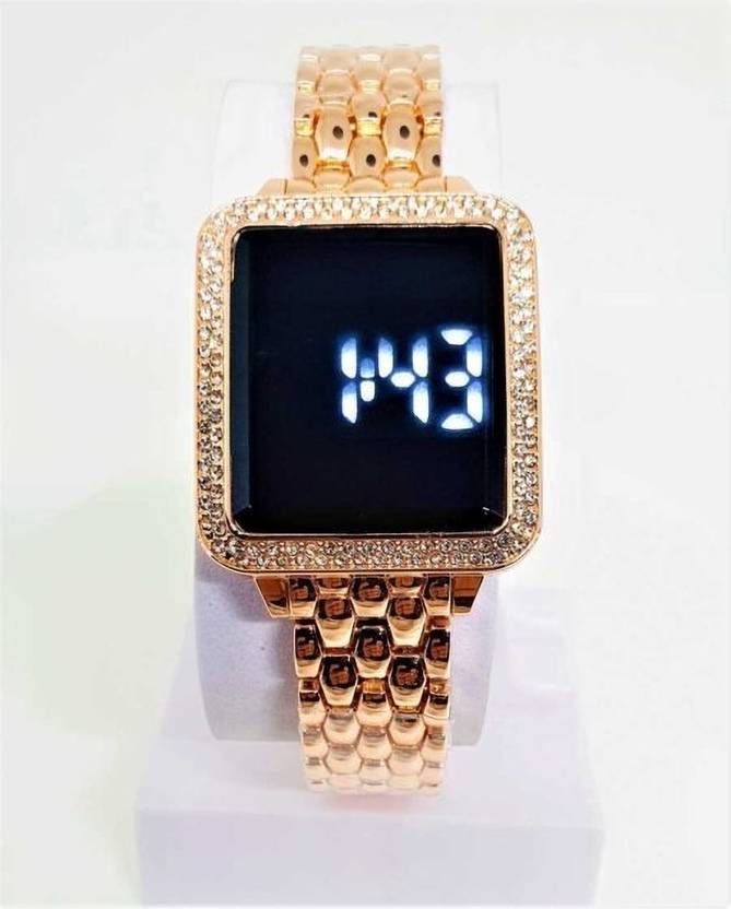 RS TRADER CO LUXURY FASHION DIAMOND CRYSTAL DIGITAL DIAL ROSE GOLD CHAIN LUXURY FASHION DIAMOND CRYSTAL DIGITAL DIAL ROSE GOLD CHAIN Digital Watch - For Women