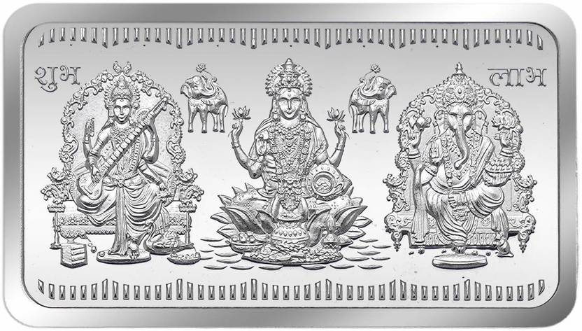 50 Grams 999 Lakshmi Ganesh Saraswati Silver bar BIS Hallmarked with box packing