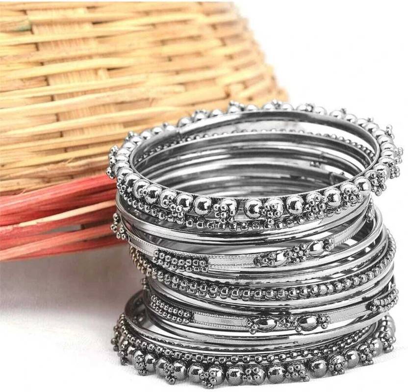 Partywear, Oxidized Silver, Traditional Bangle Set