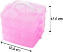 Size: 15.5 x 12.8 x 15.5 cm. Package contains 1 pc layer storage box with 3 stack able layers.