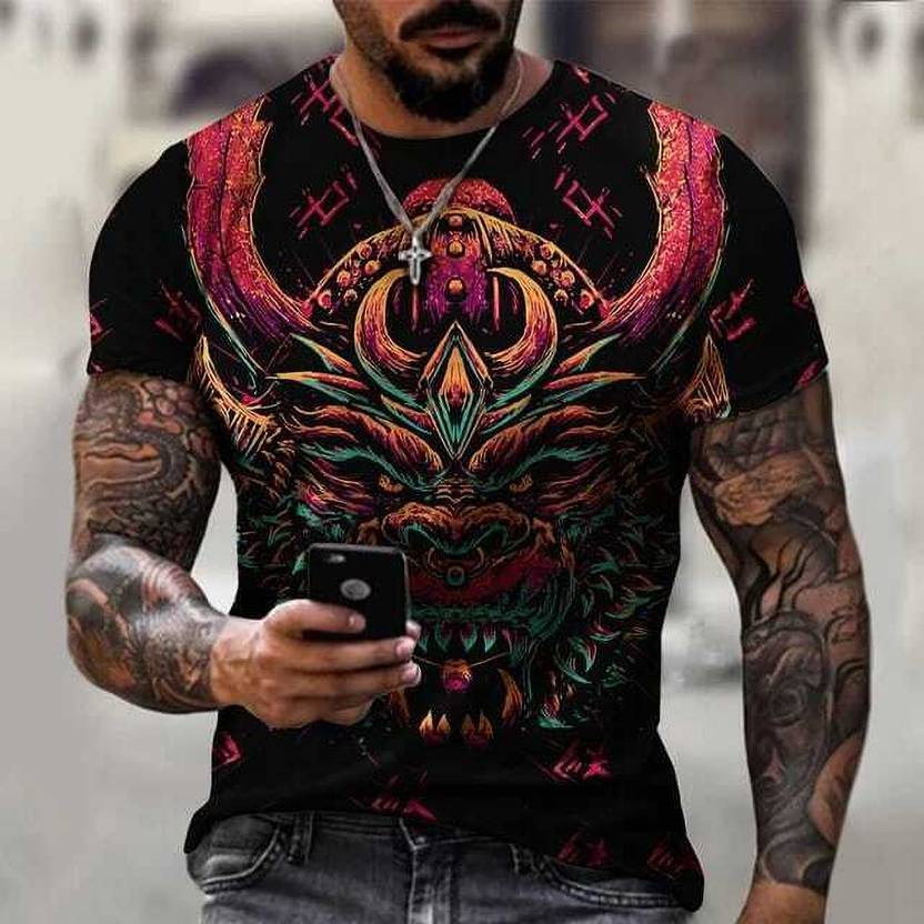 RTHREADS Men Printed Round Neck Polyester Multicolor T-Shirt