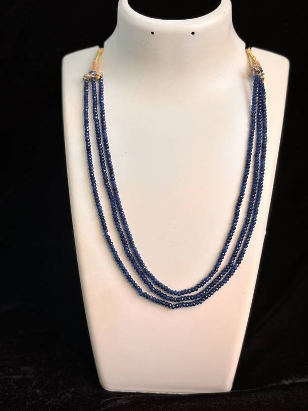 Ru Antique Onyx blue small faceted 3 strands Stone Necklace
