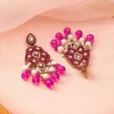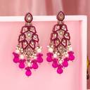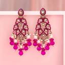RUBANS Rubans 22K Gold Plated Pink Stone & Kundan Studded Chandelier Pearl Brass Chandbali Earring