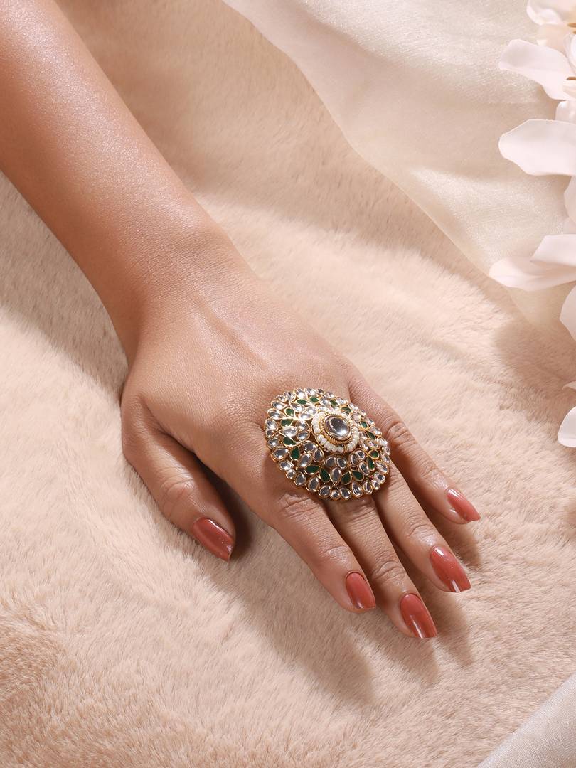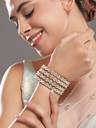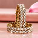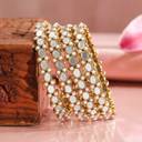 Rubans Set of 4 22K Gold-Plated Mirror-Studded Bangles with Pearl Beads