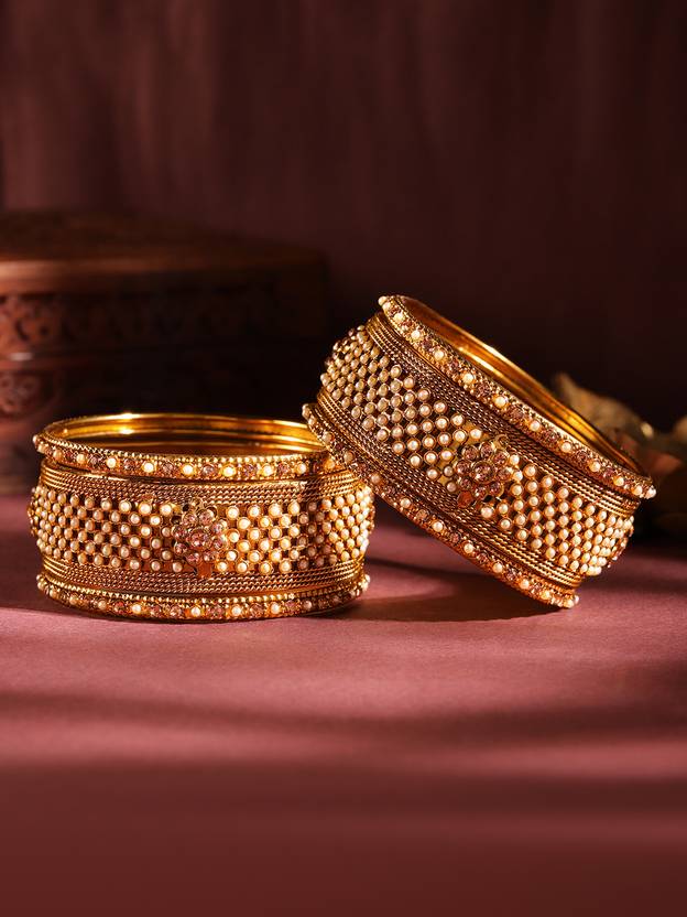 RUBANS Brass Gold-plated Bangle Set (Pack of 12)