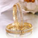 Rubans Set of 2 Rhodium & 18K Gold-Plated Cubic Zirconia Studded Designer Bangles