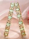 Set of 2 bangles crafted in 18K gold plating, studded with pastel green rectangular stones and white cubic zirconia floral motifs—ideal for bridal wear, festive looks, and ethnic celebrations.