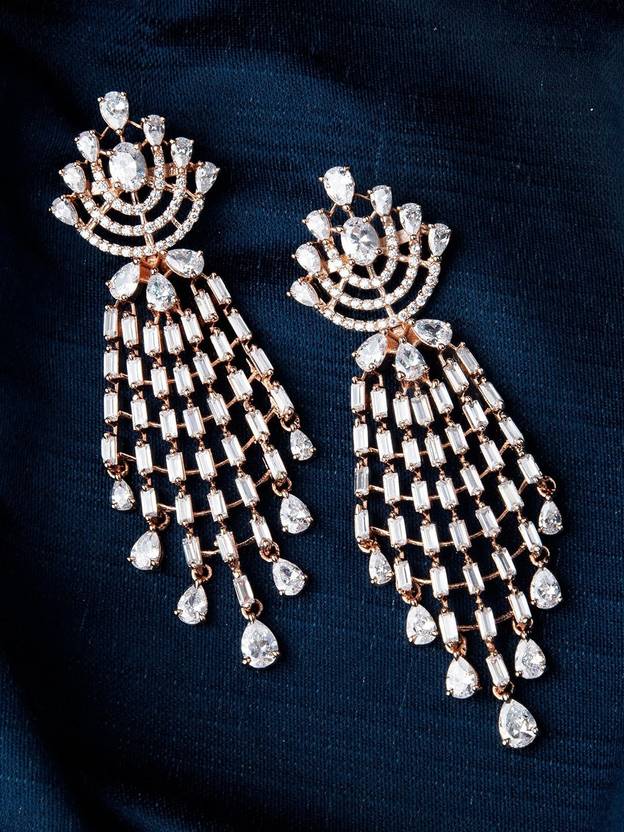 RUBANS Rubans Gold Toned AD Studded Statement Drop Earrings Brass Drops & Danglers