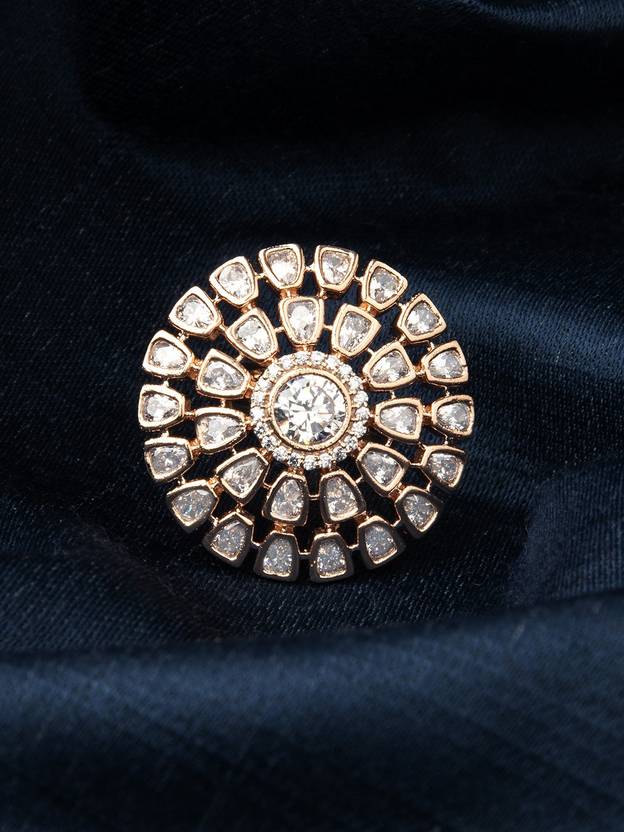 Rubans Gold Toned Zircon Stone Embellished Floral Ring