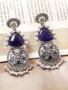 Oxidised Silver Purple Stone Beaded Statement Drop Earrings Brass Drops & Danglers