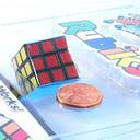 World's smallest mass produced Rubik's cube that is a little less than an inch Size: 0.9"x 0.9" x 0.9" A little stiff out of the box, no corner cutting, not for speed cube Great for travel, a little bigger than one cubie of the regular 3x3 No Stickers, paint on color: White/Yellow, Red/Orange, Green/Blue
