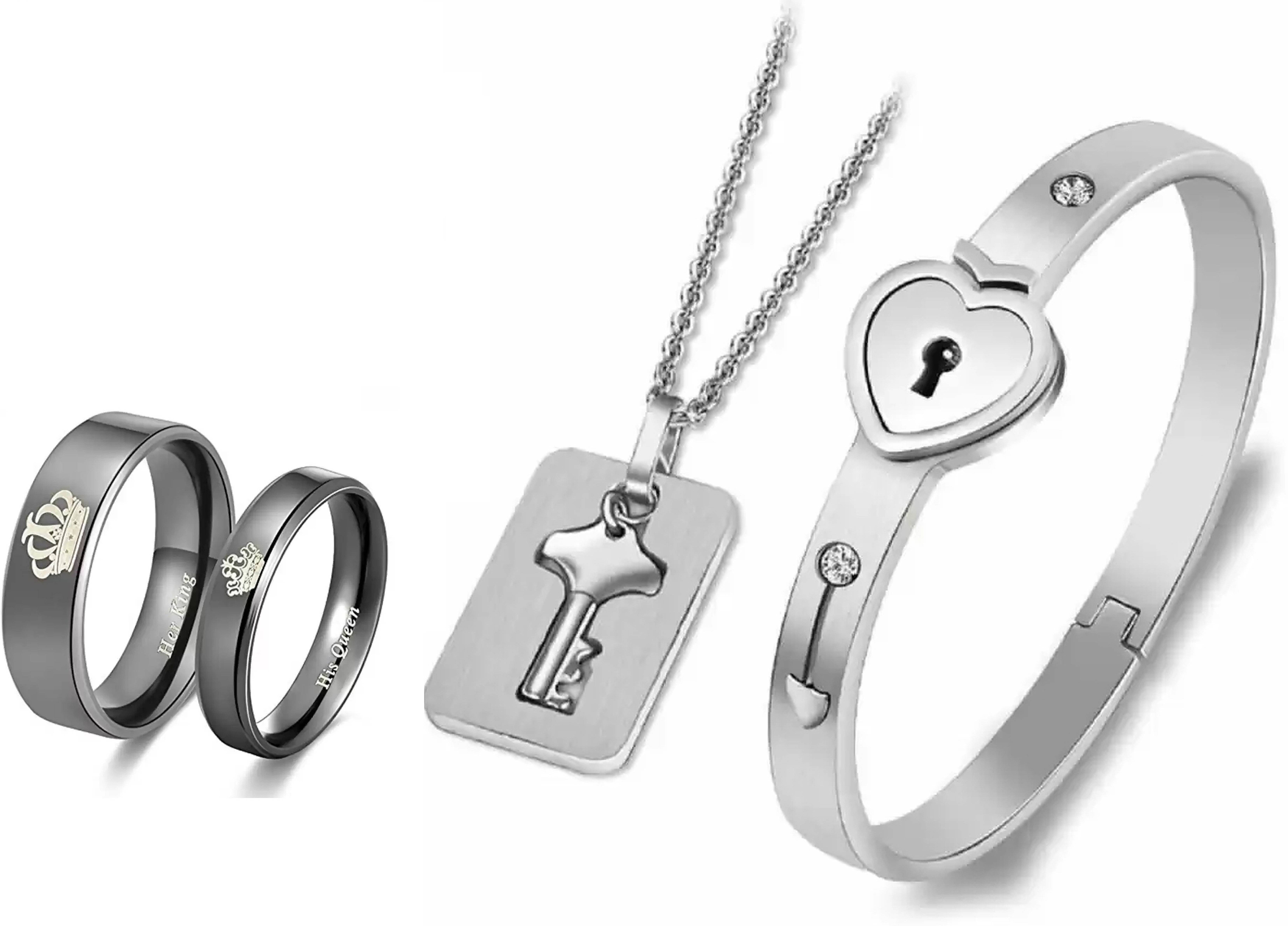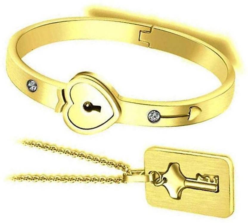 Romantic matching couples jewelry symbolize that only this key will open up the heart lock. Suitable for daily wear or as a present to you and your lover. Highly polished couples jewelry offers an understated beauty combined with strength. This key and lock bracelet and necklace set is a perfect gift for couples because of its special features, pendant key is used to open bracelet lock which makes it a very romantic gift. This bracelet is made of highest quality imported 316L Stainless Steel. Special unique design bracelet is the heart of every girl.