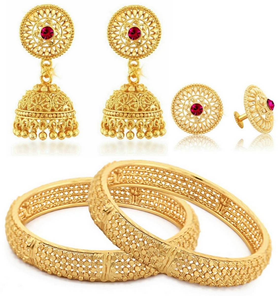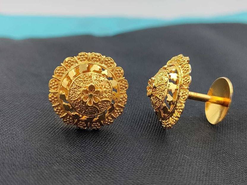 * Gold Plated Artificial Stud Ethnic Earring Women New Style. Artificial earring .Brass Traditional Screw Back Brass Material Round Earring Traditional Earring. This is a set of two earrings which are ideal for both daily use and for functions.
