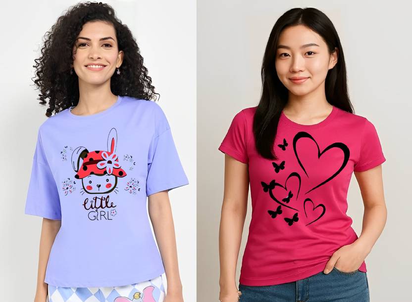 RUBYKNITS Printed Women Round Neck Multicolor T-Shirt