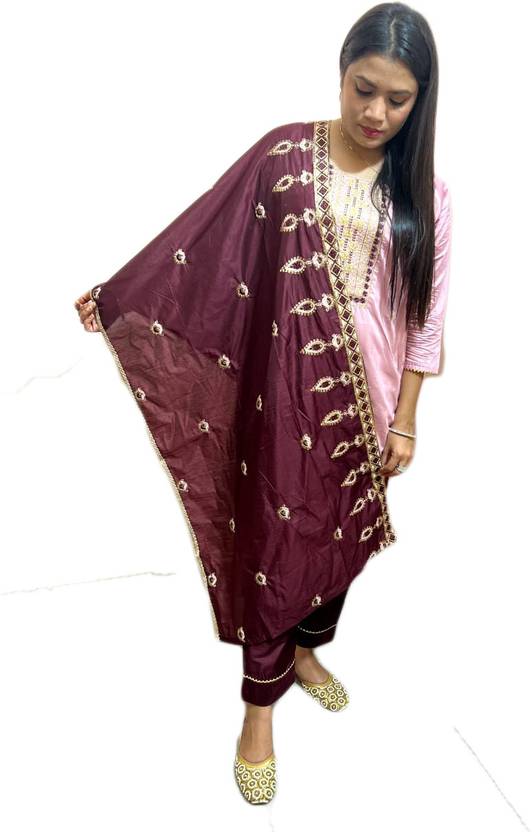 Fabric: The dupatta is often crafted from high-quality silk or chiffon to complement the kurti and pant. It may feature delicate embroidery, sequins, or other embellishments for added elegance.