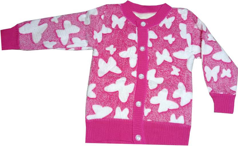 RUDRA KA Printed Round Neck Casual Baby Girls Pink Sweater