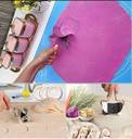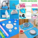 Baking Mat: The silicone rolling mat makes pastry, fondant, pizza dough, sugar paste, icing extremely easy and anti-fuss . Different measurements are marked clearly on the baking mat and these circular markings make it ideal for preparing perfectly circular pie, pastry or a pizza base . It can also be doubled as a work surface protector or a working pad. The mat is made of flexible silicone, which is nonstick, easy to clean, and nonabsorbent. Roll the mat and store it conveniently when not in use . The mat is microwave safe and can be used in all microwave ovens. Easy cleaning with hand or dishwasher. Stretchable silicon material makes this mat durable and long lasting. Puri Cutter: ? Stainless Steel Rolling Pastry Dough Cutter Saves time when cutting 3.1 x 2.4-inch continuous sheet circles of dough or pasta, stainless steel blades that cut perfect circles from dough in one easy motion. ? Ideal for pastries, bread, cookies, biscuits, tarts, mini pizzas, ravioli, pierogi, dumplings, turnovers, mini spinach pies, bite-size calzones, etc. ? Crafted of the finest stainless steel that's dishwasher safe. ? Rolling pastry and fondant, biscuit cookie cutter. ? Great for pastries, bread, cookies, biscuits, tarts, mini pizzas, and more baking desserts. ? Also good for cutting dough sheets of dumplings, ravioli, and pierogi. Silicone Oil Brush Spatula: ? Set of 2 Oil Basting Flat Pastry Brush and Spatula Purpose Cooking Brush . Made of Silicone.