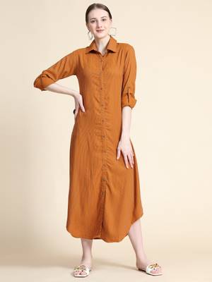 Beautiful well stitched well designed A line dress . Go a size up than your usual size if you want comfort fitting . I bought it as lounge wear. Fabric is soft cotton. Ordered pink but received red . It is gorgeous 😍