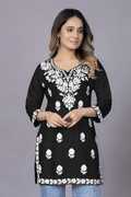 RUDRALIFESTAYLE Women Chikan Embroidery A-line Kurta (Pink)