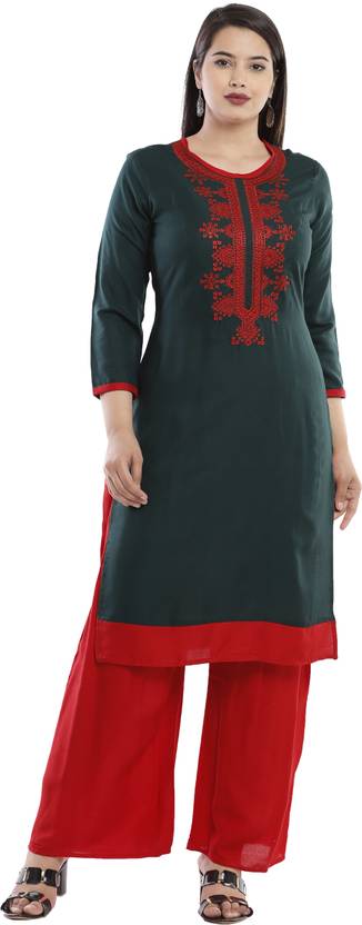Keep your look fresh by wearing this Embroidery Kurta and Palazzo set from Rudransh Enterprises, this beautiful embroidery Kurta with Palazzo set made of super fine quilted with 100% Rayon Fabrics and perfect for Daily Wear, Party wear , Office Wear and Casual Wear, this attractive kurta will surely fetch you compliments for your rich sense of Style. 1 Kurta and 1 Palazzo.