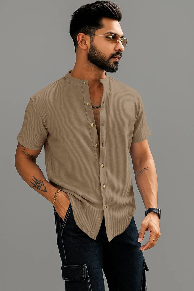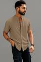 Men Regular Fit Solid Mandarin Collar Casual Shirt