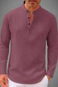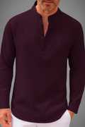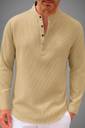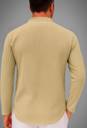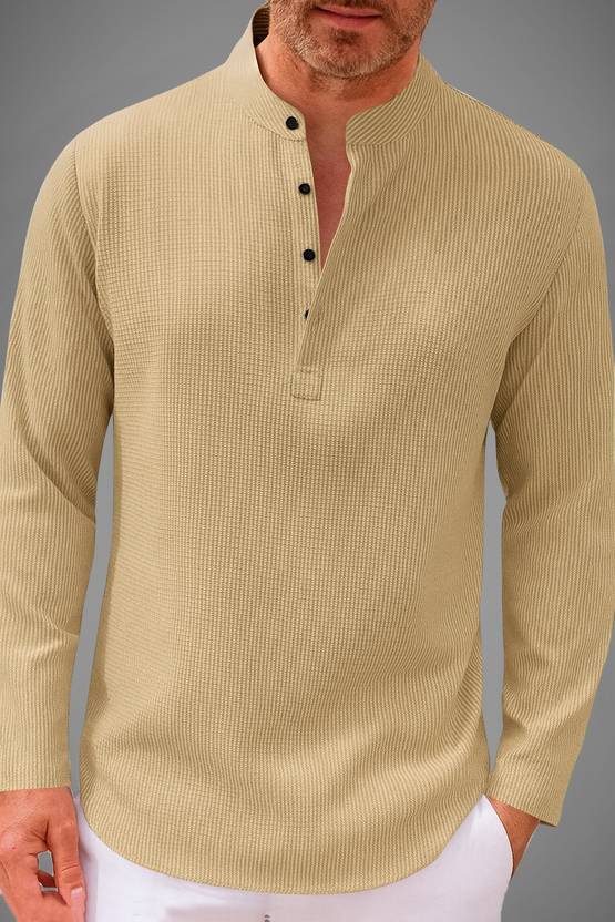 Men Solid Mandarin Collar Cotton Blend Beige T-Shirt